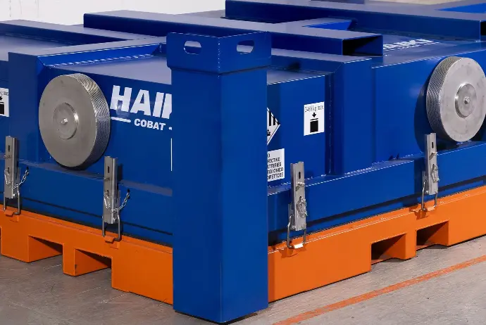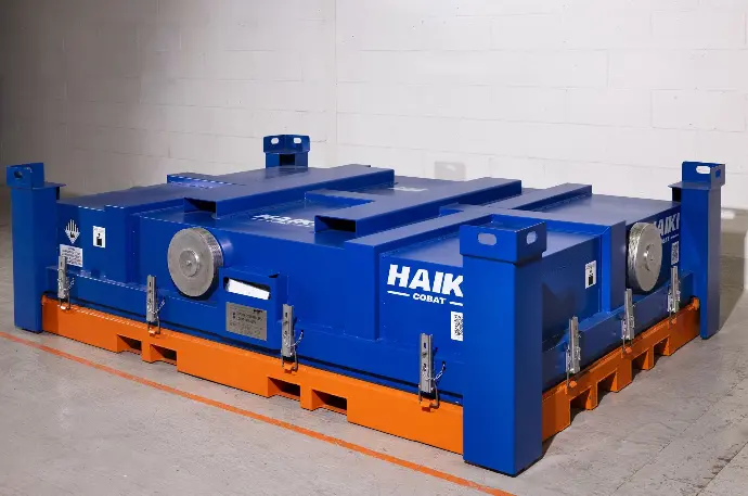 La Haiki Cobat Lithium Box large est un conteneur métallique innovant, conçu pour le stockage et le transport sûrs des batteries lithium-ion gravement endommagées susceptibles d’évoluer vers un thermal runaway.
